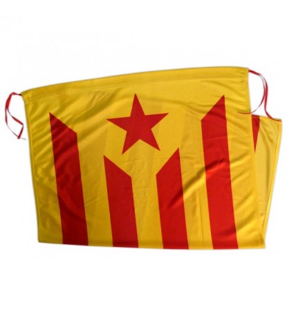Estelada Roja normal de polièster (67x97 cm) amb vetes per poder penjar-la al balcó i forat per passar-hi un pal i poder portar a les manis.