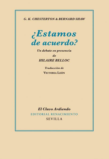 Como es sabido, George Bernard Shaw (1856-1950) y Gilbert Keith Chesterton (1874-1936), los dos formidables escritores ingleses de la primera mitad del siglo XX, polemizaron durante años y años sobre los más diversos asuntos, tanto en la prensa como en debates en vivo ante el público, como es el caso de este mismo «¿Estamos de acuerdo?», celebrado en 1923, y que milagrosamente pasó, no sabemos por manos de quién, de la sala de conferencias al papel en 1928. En realidad, poco importa el asunto concreto que debaten aquí. Sea cual sea, lo que destaca es el placer de contender.