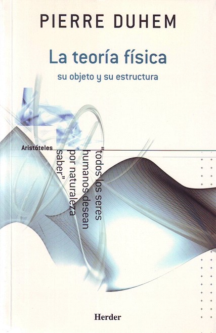 Duhem plantea en su obra capital la verdadera postura sobre qué es una teoría científica desde un punto de vista filosófico. La teoría física, su objeto y su estructura, nunca editada hasta ahora en lengua castellana, es fundamental para comprender en su totalidad la evolución de las ideas en el siglo XX. Publicada primero en forma de artículos en 1904 y 1905 (Revue de Philosophie), aparece luego como libro en una primera edición en 1906; en 1914 aparece la segunda, con dos artículos añadidos: «La física de un creyente» y «El valor de la teoría física».