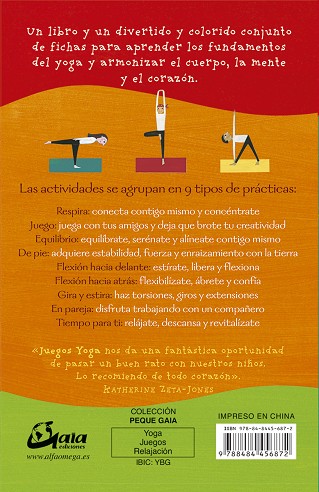 Las actividades se agrupan en 9 tipos de prácticas:Respira: conecta contigo mismo y concéntrate.Juego: juega con tus amigos y deja que brote tu creatividad.Equilibrio: equilíbrate, serénate y alinéate contigo mismo.De pie: adquiere estabilidad, fuerza y enraizamiento con la tierra.Flexión hacia dela...