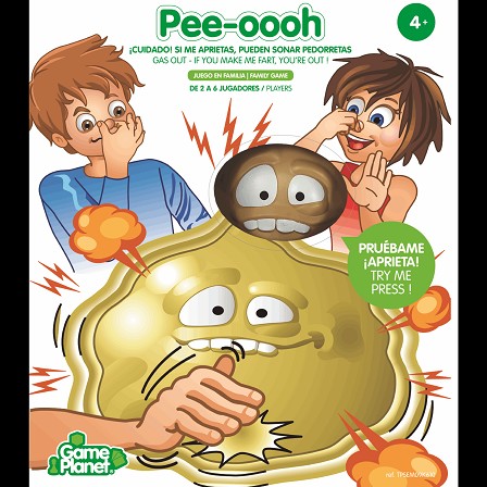 Divertido juego de mesa de la marca Game Planet con el que reirás sin parar ¡Cuidado! Si me aprietas, puedesn sonar pedorretas. ¡Apriétame el número de veces que indique tu carta! Juega tu carta pero, ¡cuidado con el gas! Si me haces soltar pedorretas, ¡has perdido! El último que quede, ¡gana!