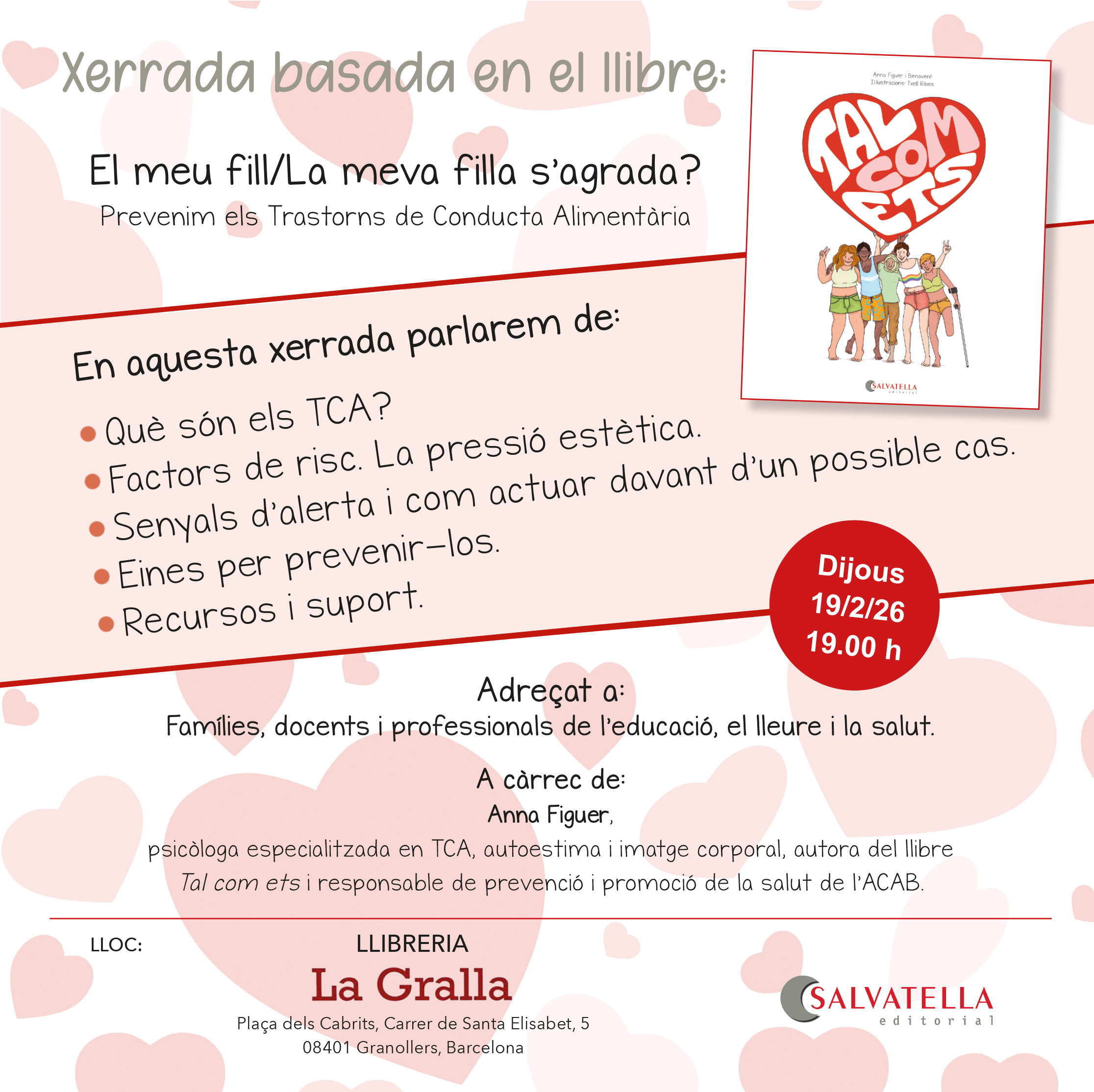 Parlarem dels TCA. Xerrada orientada a pares, docents i professionals de l'educació, el lleure i la salut.