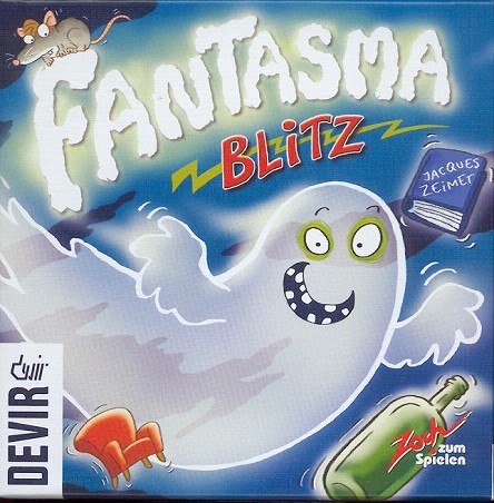 Contenido: Cinco piezas de madera (fantasma, sillón, botella, libro, ratón) y 60 cartas con ilustraciones.