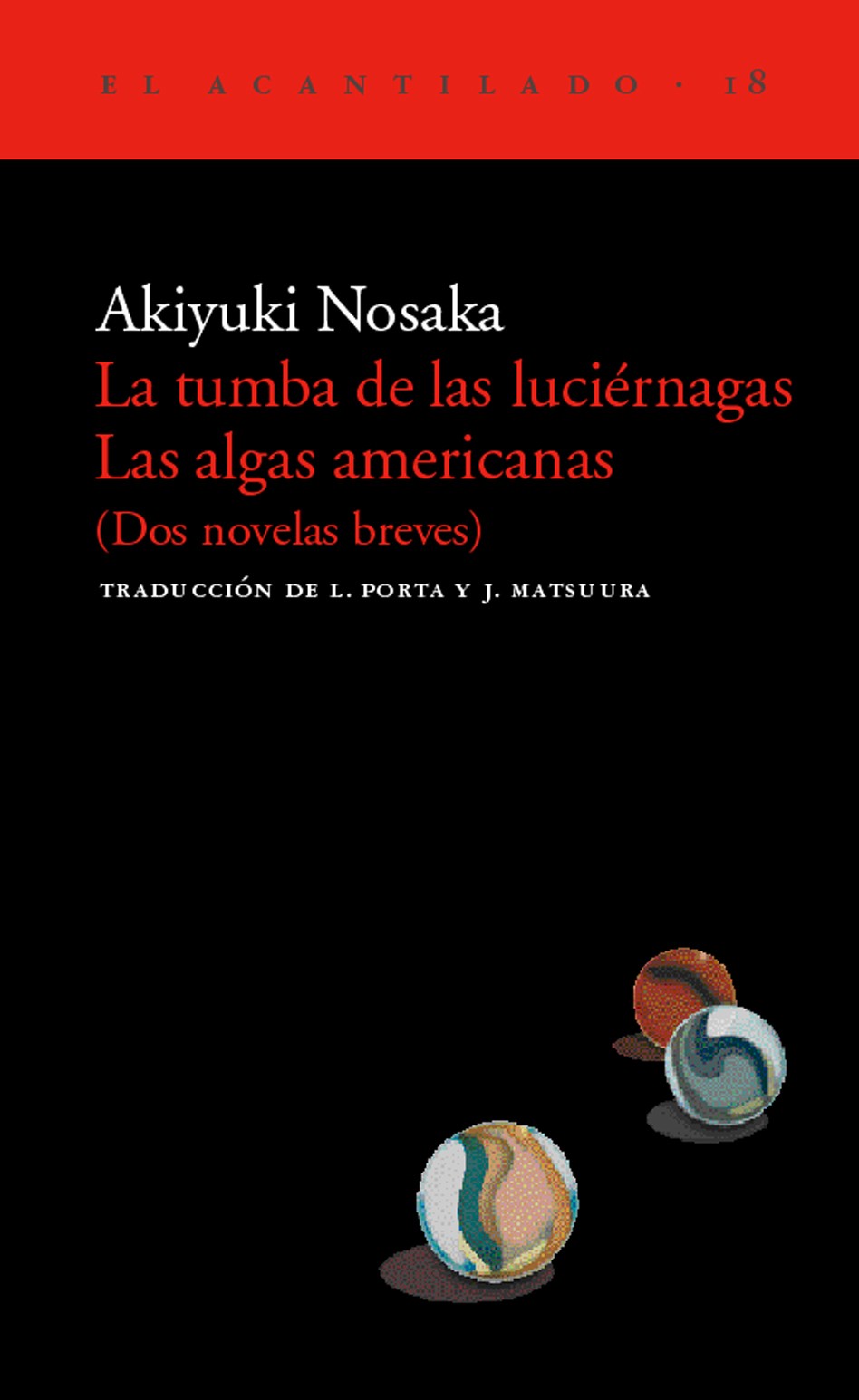 Estas dos novelas, 'La tumba de las luciérnagas' (octubre de 1967) y 'Las algas americanas' (septiembre de 1967), levantaron gran expectación al publicarse, y en 1968 ambas ganaron el premio Naoki. Con un talento fuera de lo común, complejo y desasosegado, Nosaka esconde en su estilo una mirada que no rehúye los aspectos más sórdidos y crudos de la existencia. 'La tumba de las luciérnagas' es la historia de la muerte por innanición de Seita, un niño, en 1945. Seita ha visto morir de hambre a su hermana menor, a la que cuidaba tras la muerte de su madre en un bombardeo. En 'Las algas americanas' Nosaka describe con sentido del humor el desconcierto de los que vieron transfigurarse su mundo con la llegada de la «Democracia» o la «Constitución». Con la visita de un matrimonio de pensionistas de Estados Unidos al Japón durante el período de «reeducación», nos muestra que en la conciencia de los vencidos subyace una sumisión de profundos significados. Durísimo, despiadado, Nosaka nos deja la huella de la fibra auténtica y sin concesiones.