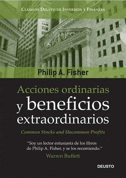 Philip Fisher empezó su carrera como analista de seguros en 1928 y tres años más tarde fundaba la Fisher & Company, una empresa de asesoría de inversión que rápidamente alcanzaría fama mundial. Treinta años más tarde (1958), Fisher recopiló su rica experiencia en este volumen, que mereció grandes elogios desde el primer día. En esta obra, Fisher va a la raíz de su exitosa filosofía, que se basa en un lúcido realismo y un análisis exhaustivo y sereno detodas las variables que pueden afectar al mercado, que le permiten tomar las decisiones más seguras. El autor aborda qué puntos hay que tener en cuenta al evaluar una posible compra, cuándo vender y cuándo no hacerlo, qué no debe hacer nunca un inversor, cómo hacer crecer los valores o cómo elaborar una filosofía sólida y coherente de inversión que se adapte a cualquier contexto económico. Warren Buffett afirma: “Yo soy un 15% Philip Fisher y un 85% Benjamin Graham”