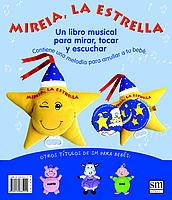 Este libro de tela cuenta la historia de Mireia, la estrella, desde que empieza su día, por la noche, hasta que se va a dormir, por el día. Además del libro que cuenta cómo es un día en la vida de Mireia, también incluye una bonita música para el bebé.