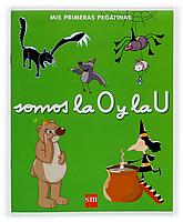 Cuaderno con pegatinas en el que todos los objetos y personas que parecen ilustrado se escriben empezando por las letras "O" y "U".