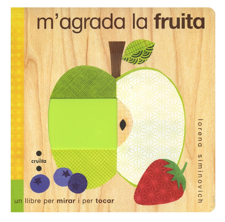 Llibre amb elements de tacte per aprendre els colors relacionant-los amb peces de fruita.