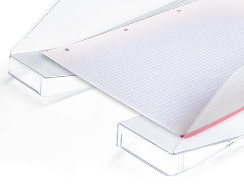 Fabricada en plástico de alta resistencia, para archivar y clasificar documentos. Disponible en colores opacos y transparentes. Hendidura frontal para un fácil acceso. 1600 micras. Medidas: 240 x 70 x 340 mm.