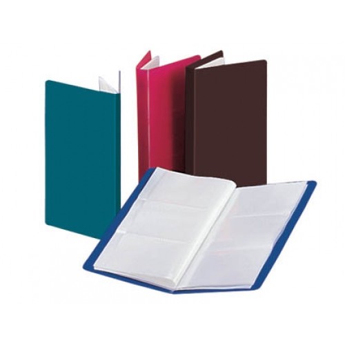 Ideal para la clasificación y archivo de 72 tarjetas de visita. Fabricado en polipropileno, incorpora 2 bolsillos interiores y 1 exterior para personalizar. 6 tarjetas por hoja. Medidas: 190 x 115 mm.