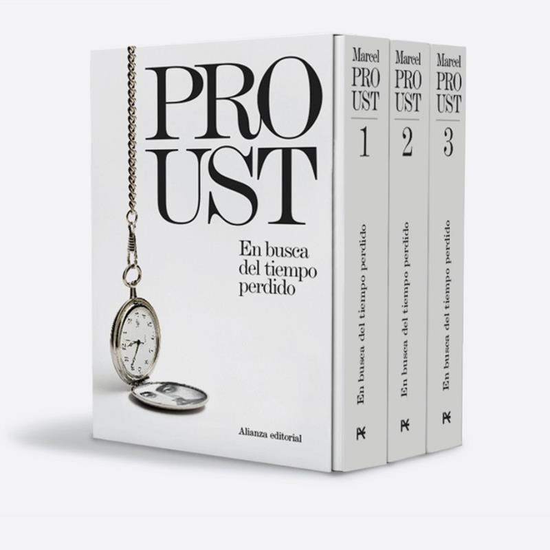 Se incluyen en este estuche, repartidos en tres volúmenes, los siete títulos que componen la serie completa: «Por el camino de Swann», «A la sombra de las muchachas en flor», «El mundo de Guermantes», «Sodoma y Gomorra», «La prisionera», «La fugitiva» y «El tiempo recobrado».