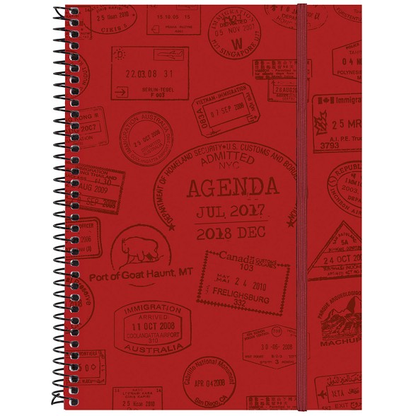 Agenda de espiral de 18 meses: inicio en julio 2017 y finalización en diciembre 2018. Perfecta para planificar a largo plazo. Cierre con goma elástica. Interior: semana vista apaisada.