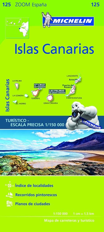 El Mapa Zoom Islas Canarias, editado a escala 1/150 000, presenta la leyenda en cuatro idiomas (castellano, alemán, francés e inglés), índice de localidades y contiene los planos de Puerto de la Cruz, Santa Cruz de la Palma, San Sebastián de la Gomera y Santa Cruz de Tenerife.