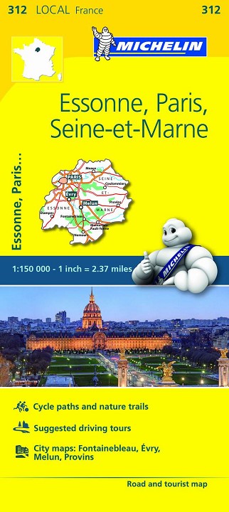 La edición actualizada del mapa Local Essone, Paris, Seine-et-Marne, editado a escala 1/150 000, incorpora la señalización de pistas para ciclistas, vías verdes, sugerencia de itinerarios, así como los planos de las ciudades de Évry, Melun, Fontainebleau y Provins.