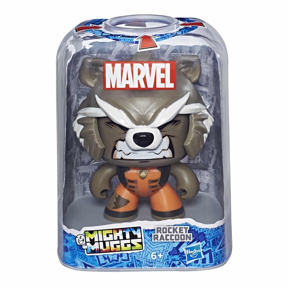 Hasbro presenta dentro de su colección Mighty Muggs para la línea Marvel la figura de Rocket Raccoon. Cambia la expresión del personaje presionando sobre su cabeza. Posee hasta 3 expresiones diferentes. Se trata de una figura articulada hecha en PVC que mide unos 9,5 cm.