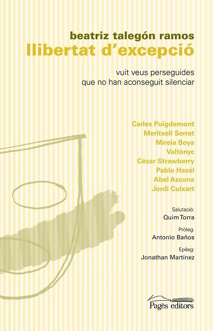 La llibertat d’expressió és un dels drets bàsics perquè una democràcia es pugui considerar com a tal. La llibertat de pensament, l’accés a la informació contrastada i veraç, representen garanties sense les quals una societat no es pot considerar lliure. Mitjançant l’entrevista, a Llibertat d’excepció es fa un recorregut per diferents àmbits des dels punts de vista d’actors socials de gran rellevància actual. Hi han col·laborat, a més, escriptors i intel·lectuals que donen la seva visió sobre la importància del fet de trobar-nos en moments de repressió. Un llibre elaborat per poder-lo llegir de diferents maneres: les preguntes semblants als entrevistats permeten fer un recorregut saltant d’una entrevista a l’altra per contrastar les diverses opinions sobre una mateixa qüestió. Serveix així per comprendre també els diferents punts de vista sobre aquest assumpte tan important. Avui dia, aquest llibre representa, sense cap dubte, una excepció de llibertat. Passeu i llegiu.
