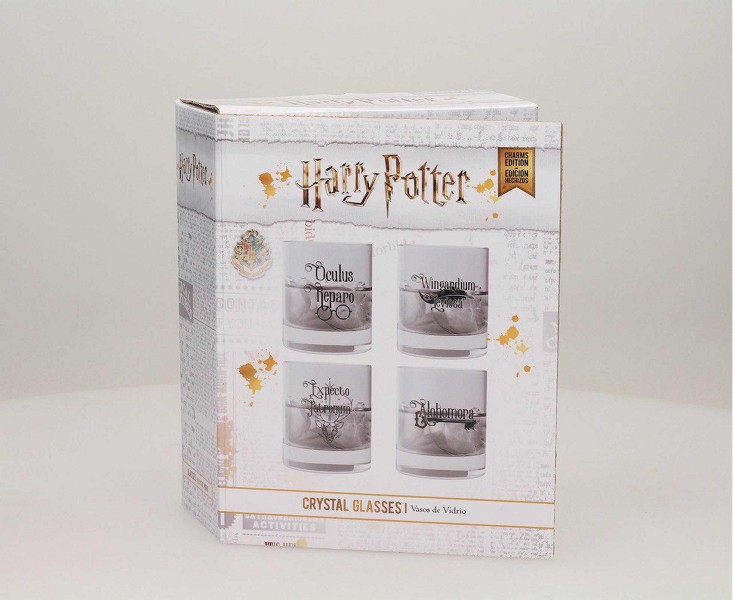 Este producto seguro que te dejará hechizado... SD Toys presenta un espectacular set de 4 vasos impresos con los hechizos más recurrentes del universo de Harry Potter. Presentados en una cuidada caja con ventana y tapa imantada, ideal para regalo, este set seguro que dará a tu mesa un toque diferente y realmente mágico. No te lo pierdas!
