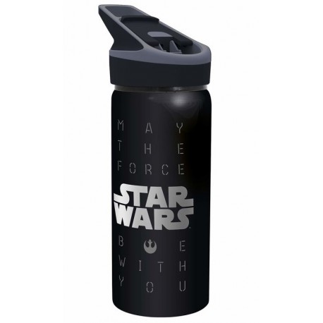 Se trata de una cantimplora fabricada en aluminio, con acabados de gran calidad y un peso muy aceptable para poder llevártela por ahí. Además, cuenta con una capacidad de nada menos que 600 ml y una práctica boquilla para poder beber de ella con una sola mano mientras caminas y sin tener que abrirla del todo. Pero sin duda lo mejor es su diseño, en un elegante color negro, sobre el cual vemos el logo de Star Wars, junto con la legendaria frase: May The Force Be With You (Que la Fuerza te Acompañe).