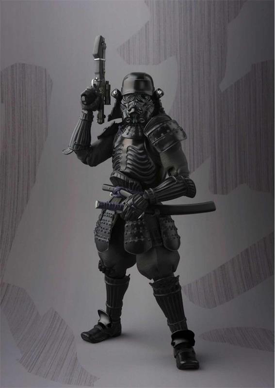 Tamashii Nations presenta esta exclusiva de su web dentro la colección de figuras MEI SHO MOVIE REALIZATION basadas en los personajes de Star Wars en su versión Japón Feudal. Esta figura está basada en uno de los Shadowtrooper y va vestido con armadura del onmitsu, el servicio secreto in japonés, también conocido antiguamente como ninjas. Esta figura articulada de PVC mide 17 cm y ha sido diseñada y esculpida con una calidad asombrosa. Incluye 8x manos intercambiables, 1x espada, 2x kunai arrojadizos y 1x blaster. Sin duda una pieza única de coleccionismo y una rareza que los fans de la serie sabrán valorar a bien seguro.