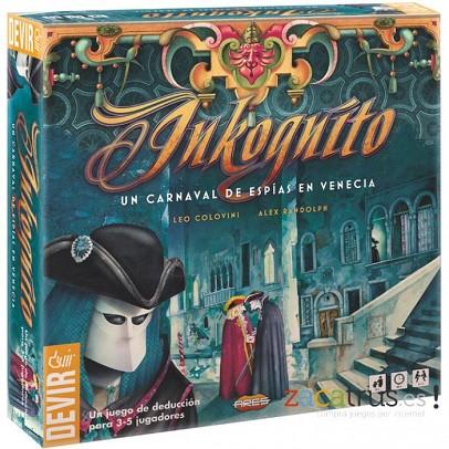 Inkógnito es un juego de deducción para 3-5 jugadores. Los jugadores adoptan el papel de agentes secretos en pleno carnaval de Venecia. Con una máscara ocultando su cara, se mueven discretamente a través de las calles y los canales de la ciudad, buscando una información secreta. Este juego único se juega por parejas, aunque los jugadores no saben quién es esta pareja secreta. Los jugadores deben descubrir, usando un sistema de deducción basado en cartas, cuál de los otros jugadores es su pareja, y una vez descubierto, trabajar juntos para cumplir su misión, o tratar de engañar a los otros jugadores para estropear sus planes... Creado por Alex Randolph y leo Colovini en 1988, y publicado originalmente por MB en 1988, Inkógnito ganó el premio Spiel of Jahres al juego más bonito del año, y desde entonces ha sido jugado por millones de jugadores de todo el mundo.