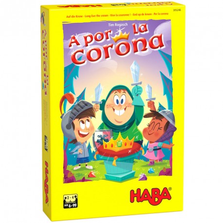 A por la Corona es un dinámico juego de mesa para 2-4 valientes caballeros a partir de los 6 años. Con unas reglas fáciles de aprender y variante para jugadores avanzados.