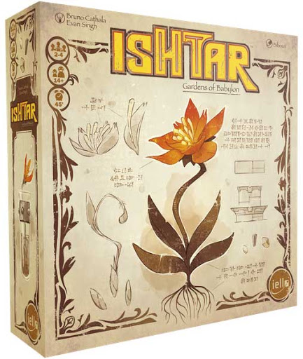 Ishtar es un juego de mesa del galardonado diseñador Bruno Cathala, en el que juegas el papel de un jardinero que pretende transformar un desierto desolado, en los Jardines Colgantes de Babilonia. Para cumplir tu misión, tendrás que plantar flores, recolectar gemas y comprar las más potentes mejoras para hacer tu sueño realidad.