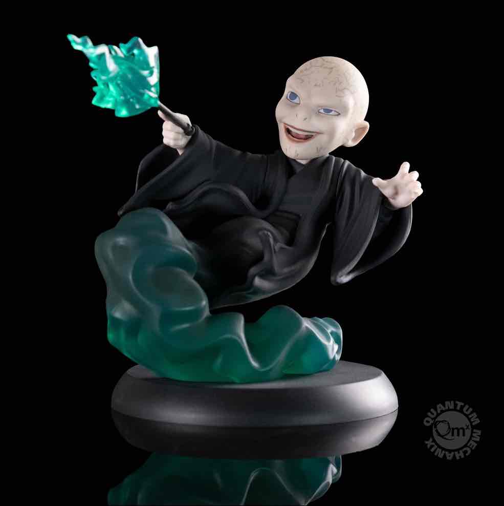 Quantum Mechanix, dentro de su linea de figuras Q-Fig, presenta la figura de Voldemort, de las películas basadas en las novelas de J.K. Rowling "Harry Potter". Presenta al malvado Señor Oscuro surgiendo de una nube de humo, sus venas asomando a través de la piel translúcida y su varita lanzando un hechizo mortal. Se trata de una figura de 15 cm de alto y se encuentra sobre una base.