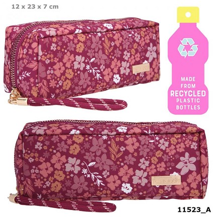Con un diseño de florecitas superbonito y respetuoso con en el medioambiente, ya que el material exterior de este estuche rojo de la colección AUTUMN FIELDS es reciclado 100 por 100. Permite ordenar todo en muy poco espacio gracias a sus tres compartimentos. Manejable y práctico, ya que el abrirlo puede localizarse todo cómodamente a la primera. Con cordón, elementos dorados y un estilo totalmente novedoso.