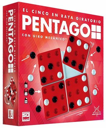 PENTAGO es un juego de estrategia rápido y divertido que mezcla sencillez y sofisticación. El objetivo es conseguir crear una fila con cinco canicas de tu color en cualquier punto del tablero. Pero en tu turno no solo tendrás que colocar la canica en uno de los espacios disponibles: también tendrás que girar uno de los cuatro cuadrados! Todo un reto tanto para jugadoras principiantes como para expertas. Este juego inventado por el sueco Tomas Flodén ha ganado más premios y vendido más copias que cualquier otro juego de mesa sueco. Contenido: 36 canicas 1 tablero giratorio 1 reglamento con 14 idiomas Edad Recomendada : 8+ Duración Partida: 15 min. Jugadores: 2