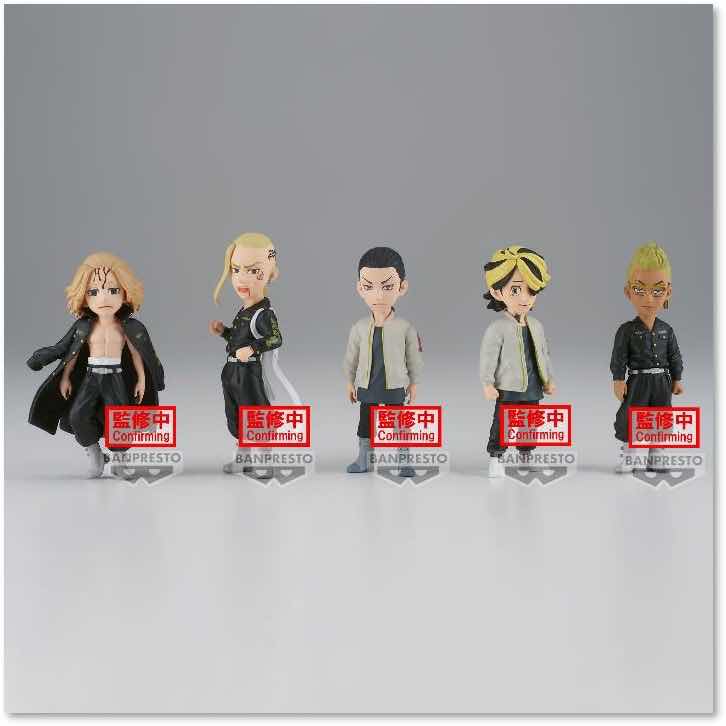 Banpresto presenta dentro de su línea de productos este surtido de Tokyo Revengers de 12 figuras de 8 cm para la serie WCF. Se trata de un surtido de 5 modelos con el siguiente ratio: 3 x Manjiro Sanoo, 3 x Ken Ryuguji, 2 Makoto Suzuki, 2 x Kazutora Hanemiya y 2 x Tetta Kisaki.