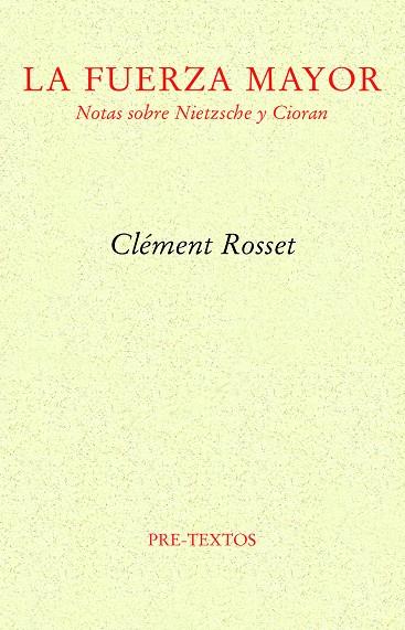La presente obra es, sin duda, un buen exponente de la producción filosófica de Rosset. El concienzudo análisis de esa fuerza mayor que es la alegría, punto neurálgico de toda su filosofía, y su incidencia –presente o ausente– en el que quizá sea el máximo antagonismo filosófico al que puede llegarse a este respecto. Si «Notas sobre Nietzsche», uno de los estudios más lúcidos sobre la filosofía del discípulo de Dionisio y, sin duda, el más nietzscheano de todos ellos, ilustra un modo particular de concebir la filosofía, consagrada a destacar el elemento de la afirmación, «El descontento de Cioran» muestra a la perfección el caso contrario, a saber, el inconveniente de haber nacido, la teórica imposibilidad de aclimatarse a la irremediable y fatal aspereza de lo real.
