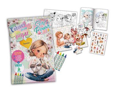 Un fantástico kit con todo lo que necesitas ¡para dar rienda libre a tu creatividad!Esta preciosa bolsa brillante, que puedes reutilizar, contiene un cuaderno con las ilustraciones más bonitas de las chicas Girl Power para pintar, 4 ceras de colores, stikers para decorar tus libretas, carpetas... y ...
