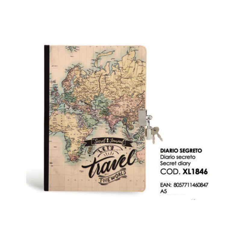 Diario secreto, modelo mapas.Medidas ± 14,50 x 21 x 1,5 cm.Tamaño A5 con 96 hojas de 80 gramos