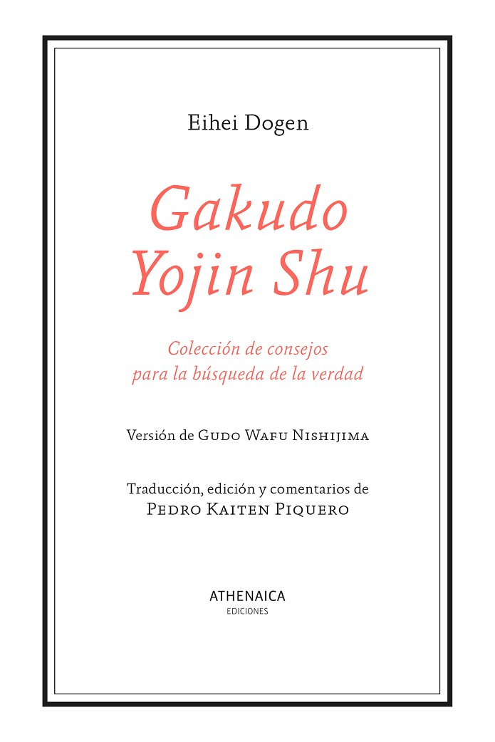 El Gakudo Yojin Shu (Colección de consejos para la búsqueda de la verdad), ofrecido aquí en la versión de Gudo Wafu Nishijima, es una breve recopilación de diez textos con consejos para acercarse al budismo. Basándose en su propia experiencia en la búsqueda de la verdad, y con el fin de ayudar a las personas que quisieran aprenderla, el Maestro Dogen escribió esta guía simple y directa reparando en los aspectos fundamentales a la hora de seguir la vía budista: desde la voluntad para la verdad, las auténticas enseñanzas o qué debemos esperar de la práctica, a la búsqueda de un verdadero maestro o la importancia de sentarse en zazen. Al texto original de Eihei Dogen se suman en esta edición los extraordinarios comentarios del maestro zen Kaiten Piquero que, de forma coloquial, es decir, priorizando la claridad e incorporando ejemplos sencillos, pero al mismo tiempo profundizando al detalle en cada uno de los consejos, toma como referencia el libro original para conformar una guía introductoria contemporánea que expone las bases del budismo zen y cómo acercarse a él. Por ello, el libro admite varios niveles de lectura, intentando servir tanto a los que deseen iniciarse o conocer las bases del budismo como a aquellos que quieran ahondar en su enseñanza.