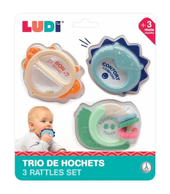 Tres sonajeros de plastico para +3 meses de la marca Ludi.