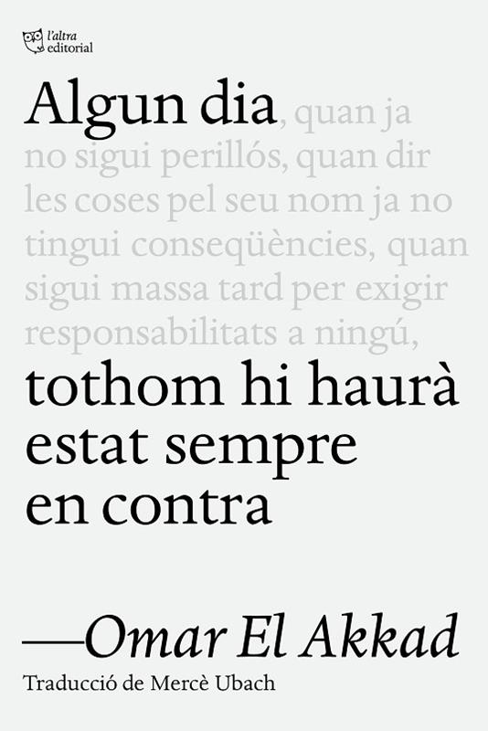 Com a immigrant nascut a Egipte i instal·lat al món occidental des de molt jove, Omar El Akkad estava convençut que Occident era una terra de llibertat i justícia. Però en els últims vint anys, durant els quals ha exercit de periodista en primeríssima línia i ha sigut testimoni de la matança indiscriminada de la població de Gaza per part d’Israel, ha arribat a la conclusió que la base moral sobre la qual s’ha erigit el món Occidental és una gran mentida. Algun dia tothom hi haurà estat sempre en contra és una crònica punyent i incomòda que clama contra el silenci eixordador dels mitjans de comunicació europeus i americans, de la classe política en general —i, molt concretament, de les esquerres benpensants—, i denuncia la incapacitat i les trampes del llenguatge a l’hora de descriure les atrocitats que s’estan cometent a Gaza i les consequ¨ències devastadores de no prendre partit, de no mullar-se i, en definitiva, de no empatitzar amb els altres. Un llibre cru i trasbalsador, imprescindible.