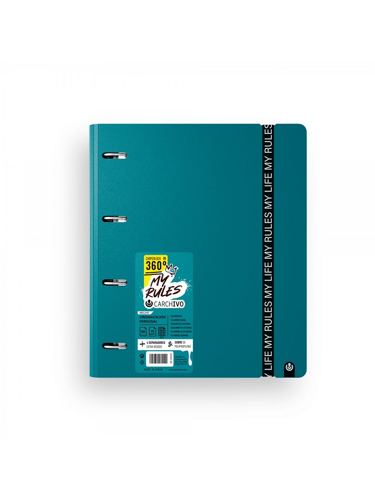 • CARPETA CARCHIVO 360º FOAM MY RULES 4 ANELLES 35 MM + RECANVI TURQUESA FOSC