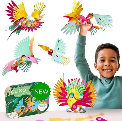 Vuela bien alto con el pack de aves tropicales de Clixo. Con un mecanismo de aleteo personalizado, piezas de vibrantes colores e inspiradas en la naturaleza. Este pack te invita a una aventura a través de las profundidades y las alturas de la selva tropical. Las piezas magnéticas y flexibles de Clixo inspiran la creatividad, fomentan el aprendizaje STEAM y permiten construir infinitas creaciones de aves, desde majestuosos tucanes hasta elegantes colibríes. Da rienda suelta a tu imaginación, explora nuevos mundos y descubre el poder del juego con Clixo.
