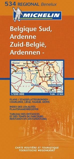 La edición actualizada del mapa Regional Belgique Sud Ardenne, editado a escala 1/200 000, incorpora un índice de localidades, cuadro de distancias y tiempos de recorrido entre ciudades, así como los planos de Charleroi, Lieja, Namur y Mons.