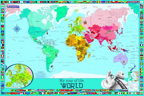 Incluye, además, una hoja de pegatinas con las banderas de los países actuales. Este mapa plastificado mide 91 x 61 cms.